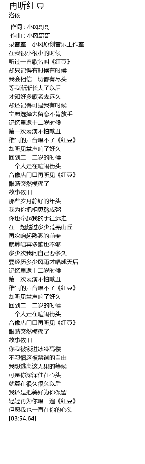 | [03:39.18] | 轻轻再为你唱一遍《红豆》 |