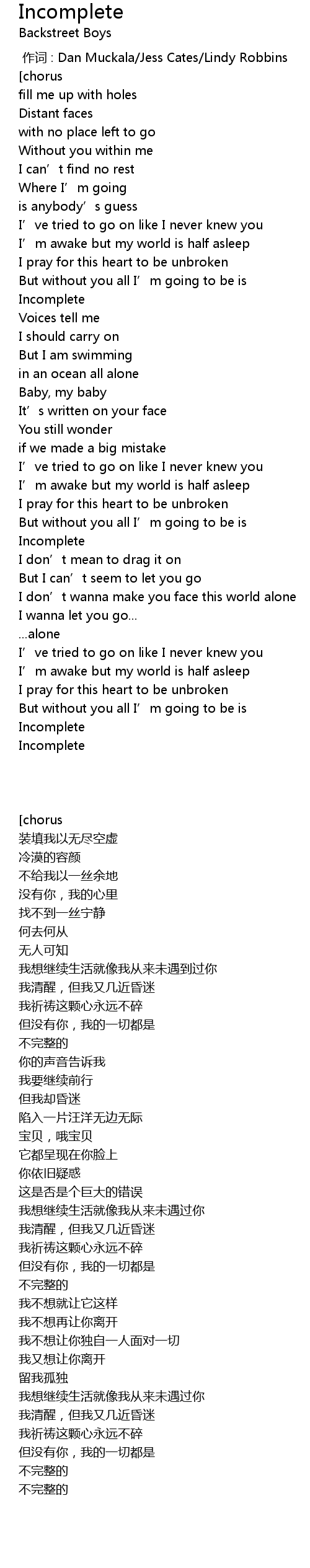 | Song | Incomplete |