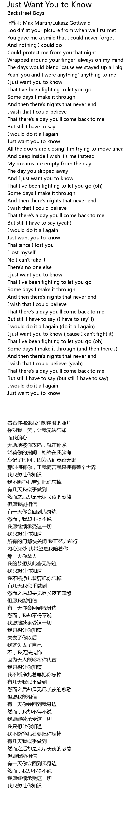 | Song | Just Want You to Know |