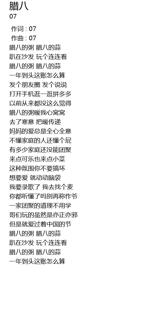 | [00:15.121] | 腊八的粥 腊八的蒜 |
