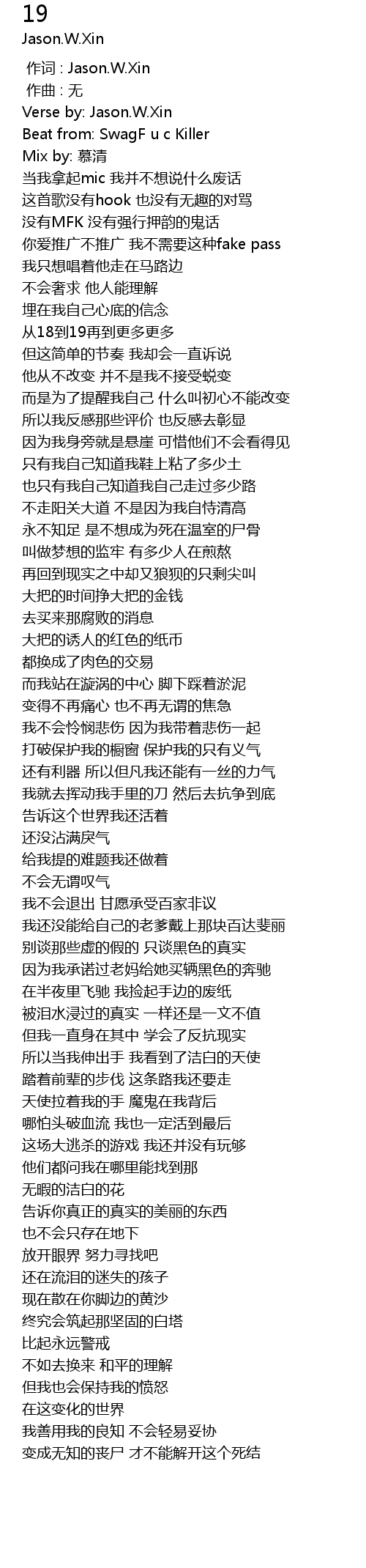 | [00:00.000] | 作词 : Jason.W.Xin |