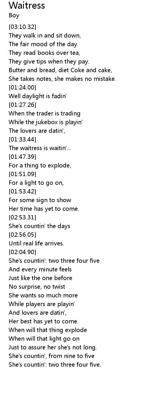 | [00:45.53] | The waitress is waitin'... |