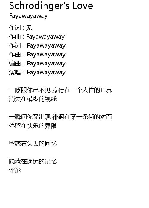 | 作词:Fayawayaway | |