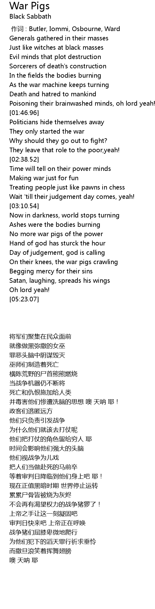 | [00:00.00] | 作词 : Butler, Iommi, Osbourne, Ward |