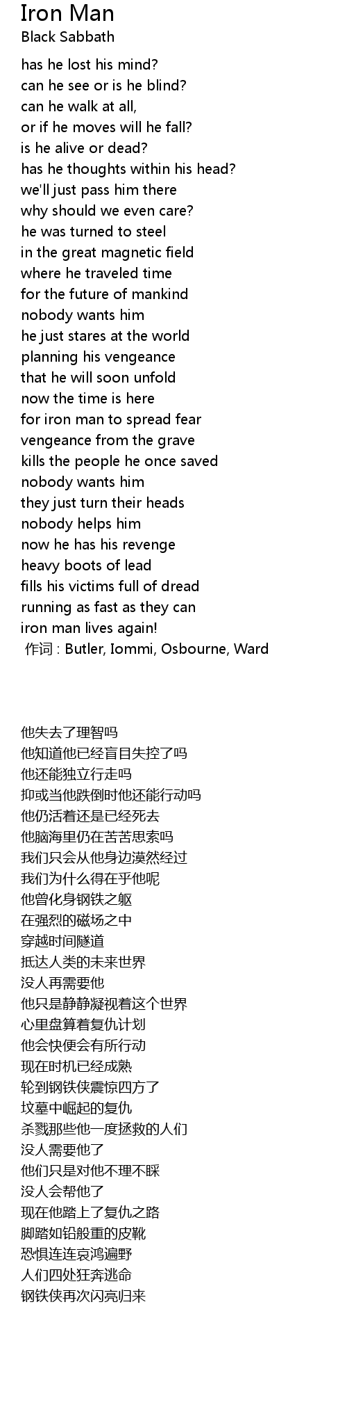 | [00:00.00] | 作词 : Butler, Iommi, Osbourne, Ward |