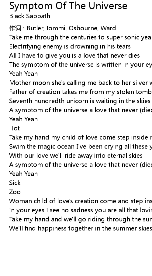 | 作词 : Butler, Iommi, Osbourne, Ward | |