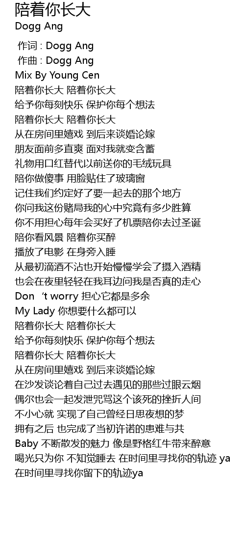 | [00:14.556] | 陪着你长大 陪着你长大 |