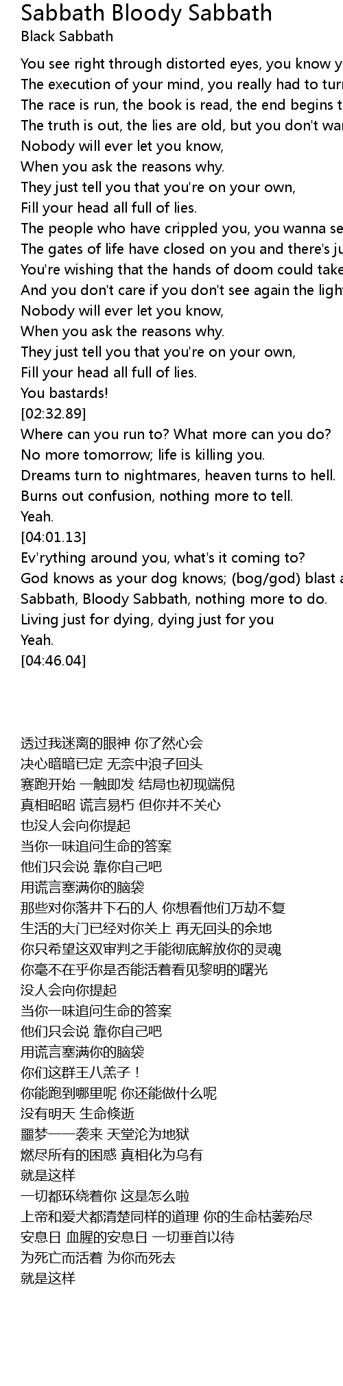 [04:29.16] Sabbath, Bloody Sabbath, nothing more to do.