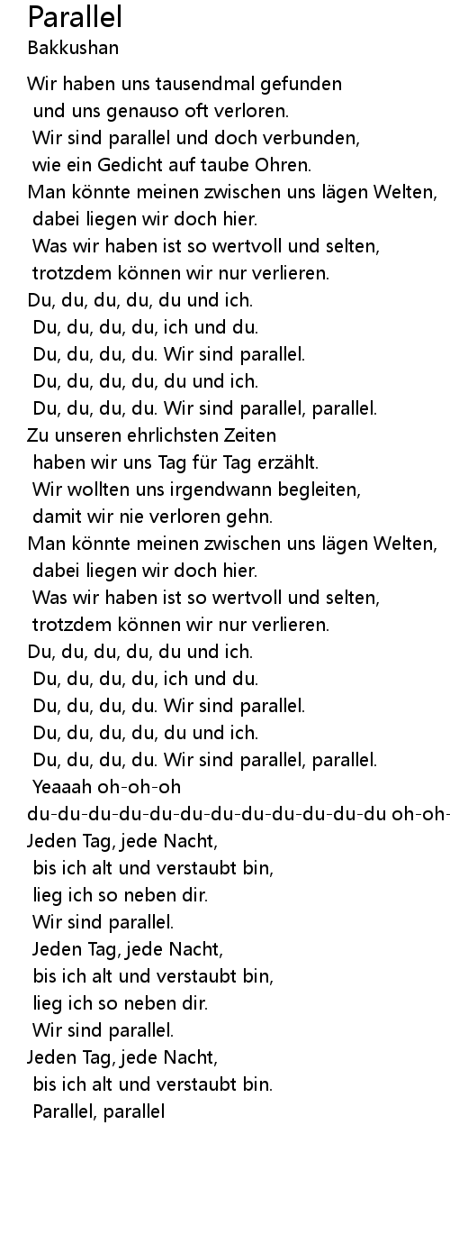| Du, du, du, du. Wir sind parallel, parallel. | |