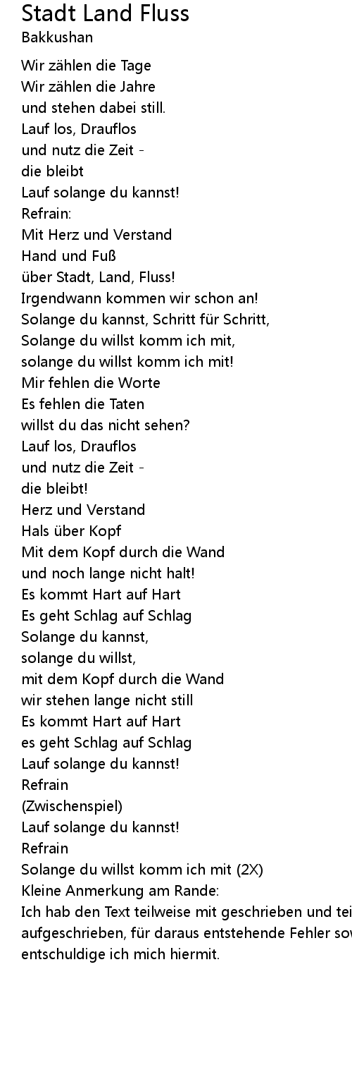 | Ich hab den Text teilweise mit geschrieben und teilweise auswendig aufgeschrieben, fü r daraus entstehende Fehler sowie fü r Rechtschreibfehler entschuldige ich mich hiermit. |