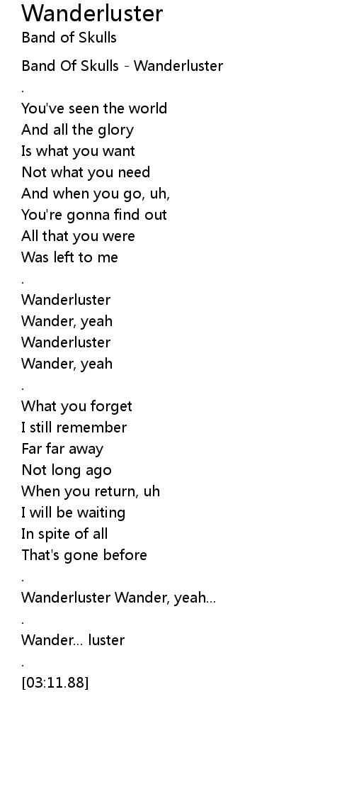 | [01:05.42] | Wanderluster |