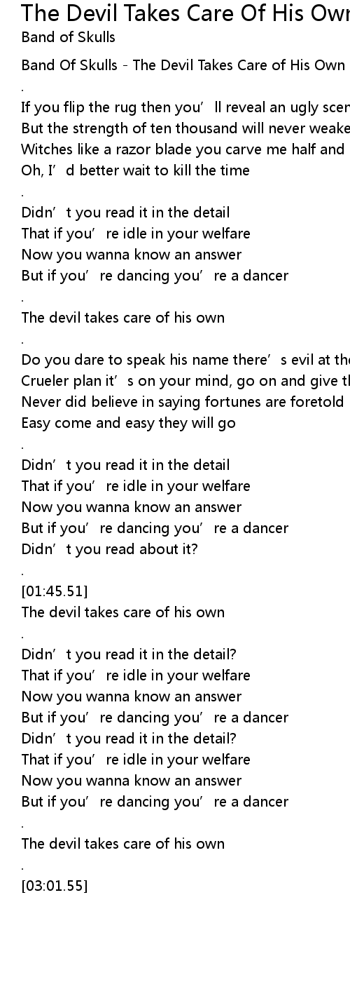| [00:00.33] | Band Of Skulls The Devil Takes Care of His Own |