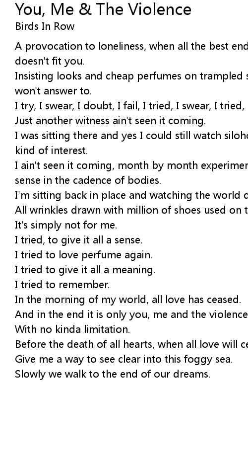 And in the end it is only you, me and the violence |