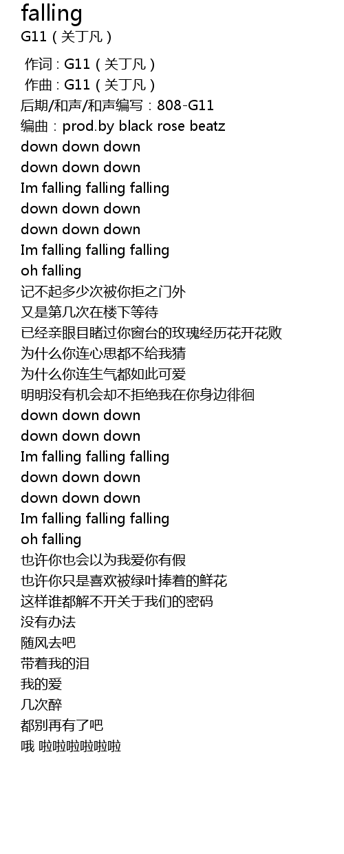 | [00:00.000] | 作词 : G11(关丁凡) |
