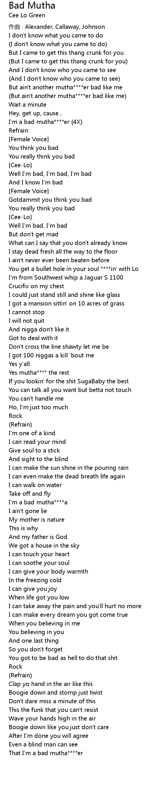 | (But ain't another mutha****er bad like me) | |