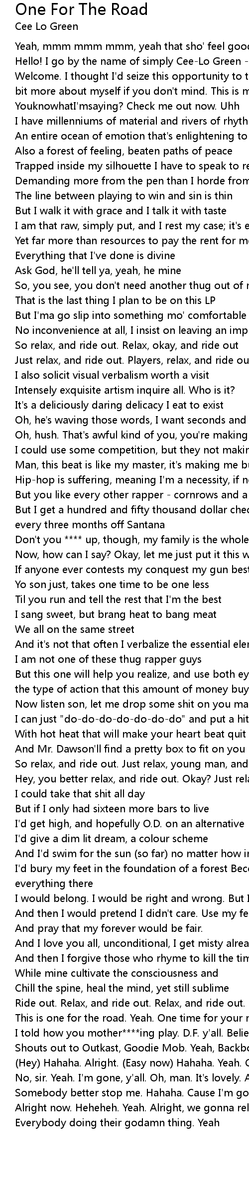 This is one for the road. Yeah. One time for your mother****ing mind |