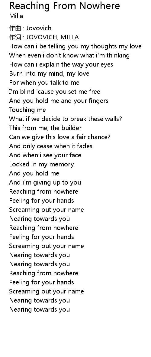 | Song | Reaching From Nowhere |