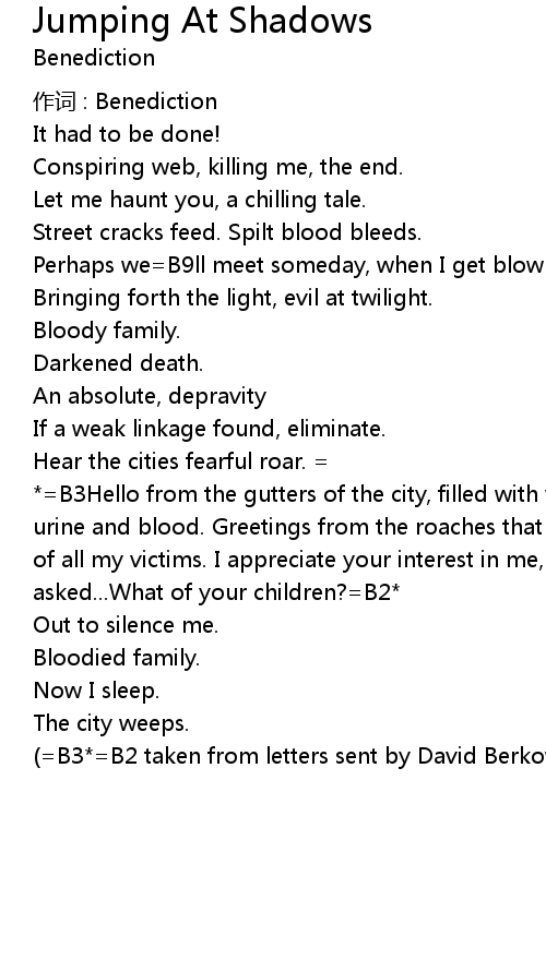 | Song | Jumping At Shadows |