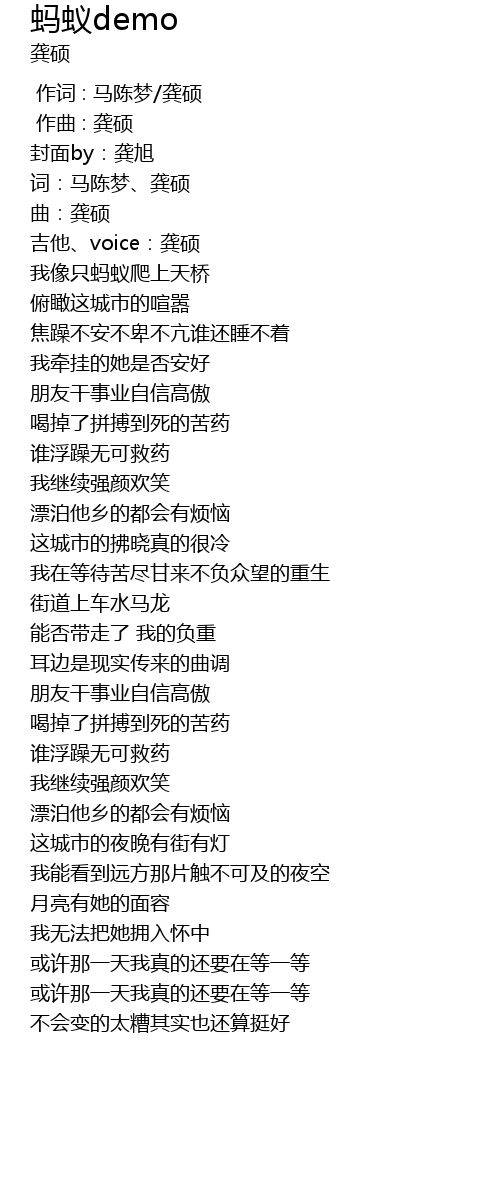 | [00:06.00] | 词:马陈梦、龚硕 |