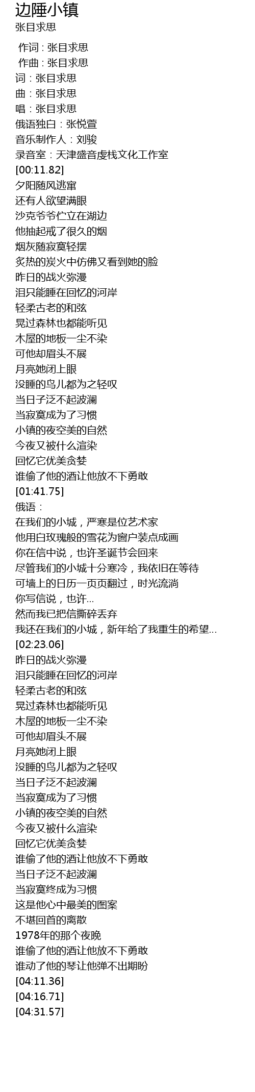 | [00:05.35] | 俄语独白:张悦萱 |