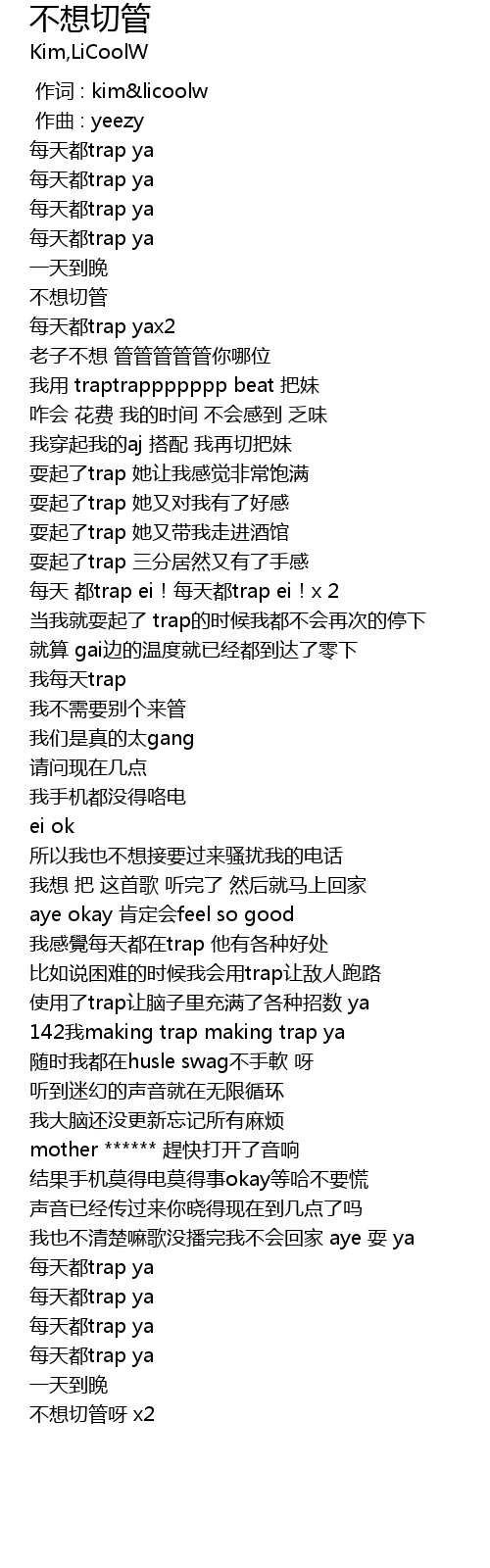 | [00:59.706] | 每天 都trap ei!每天都trap ei!x 2 |
