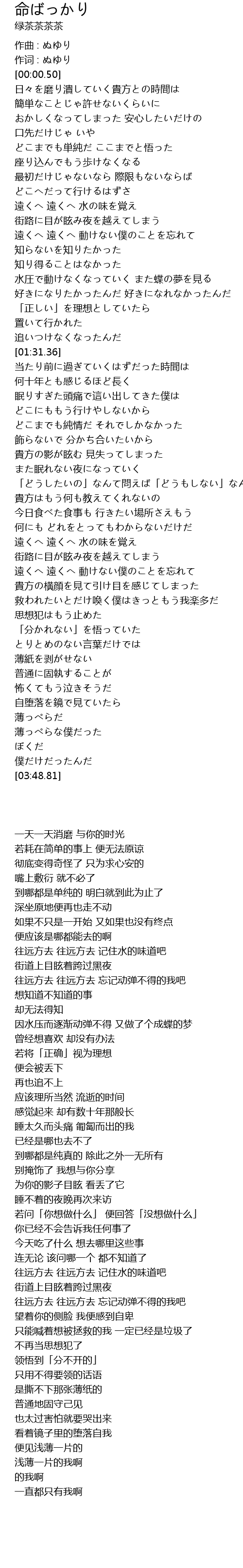 | [00:00.05] | 作词 : ぬゆり |