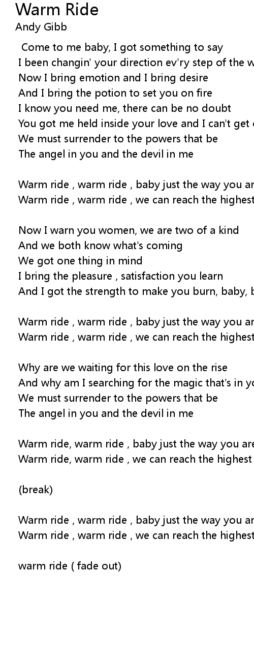 | Warm ride, warm ride , baby just the way you are | |