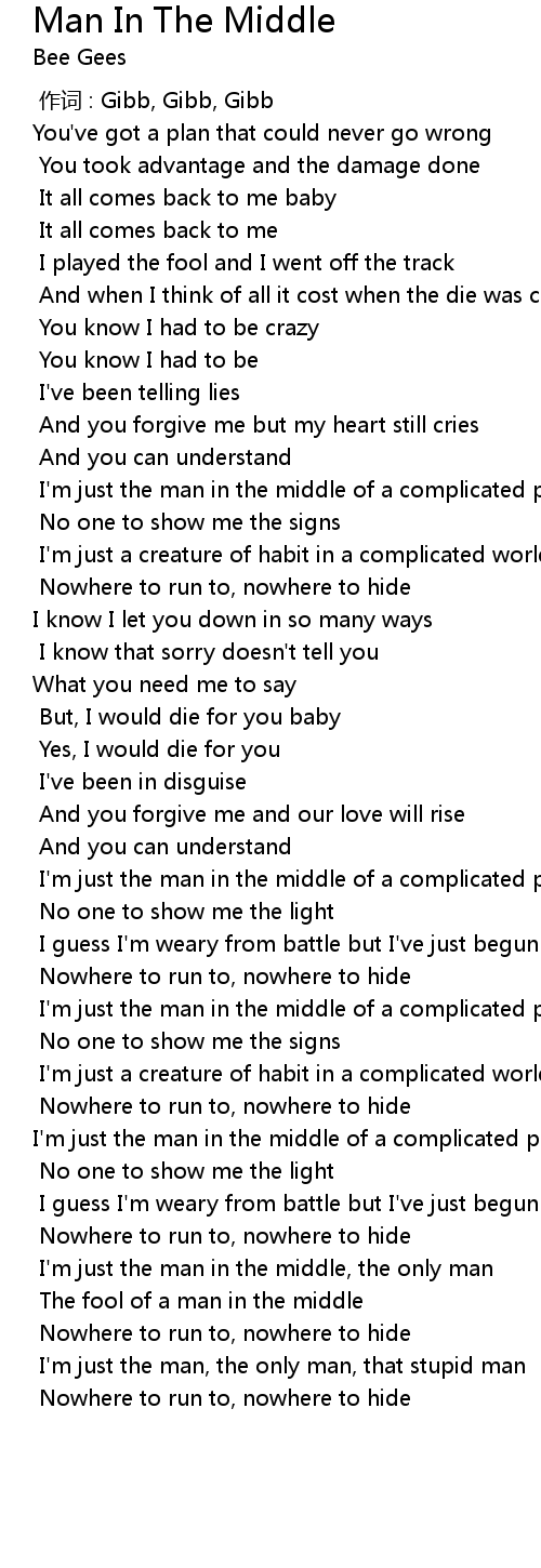 | [03:13.59] | I' m just the man in the middle, the only man |