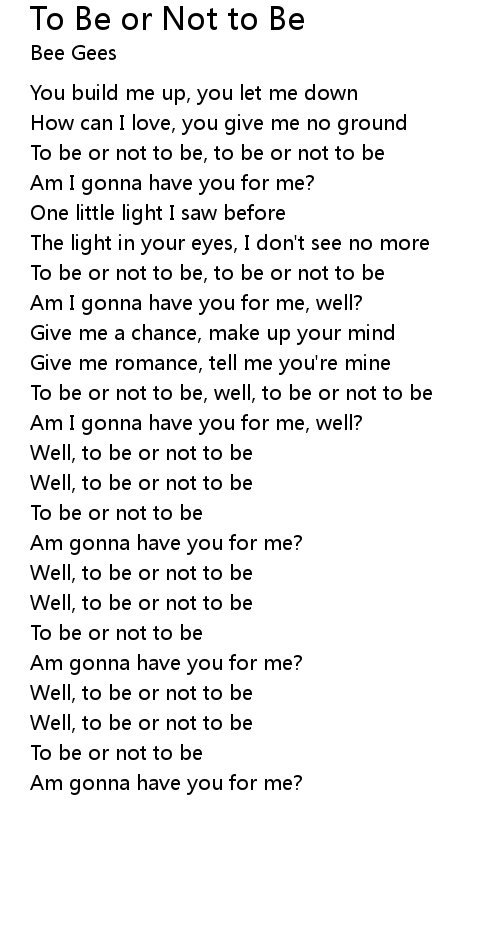 To be or not to be, to be or not to be |