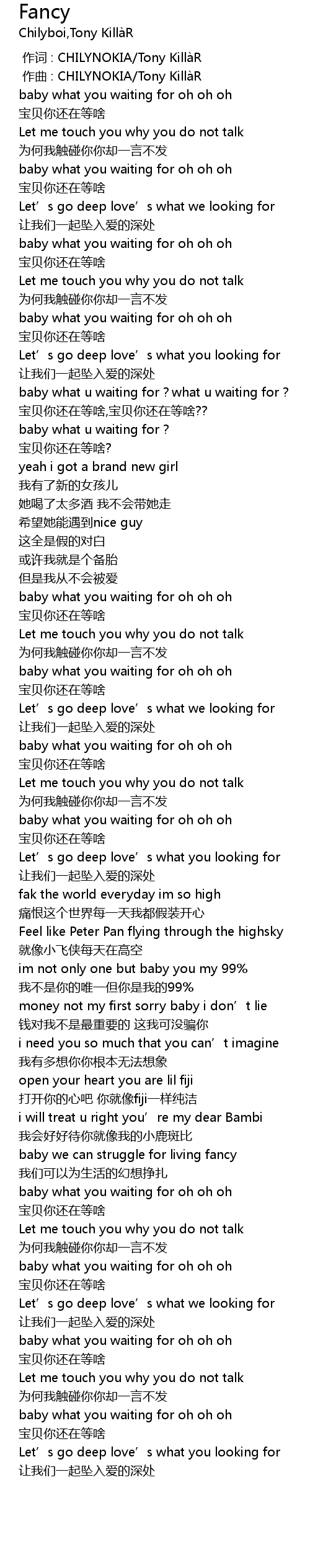 | [00:18.903] | baby what you waiting for oh oh oh |