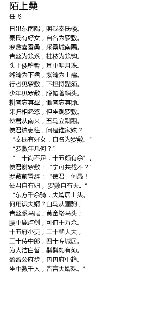 | 罗敷喜蚕桑,采桑城南隅。 | |