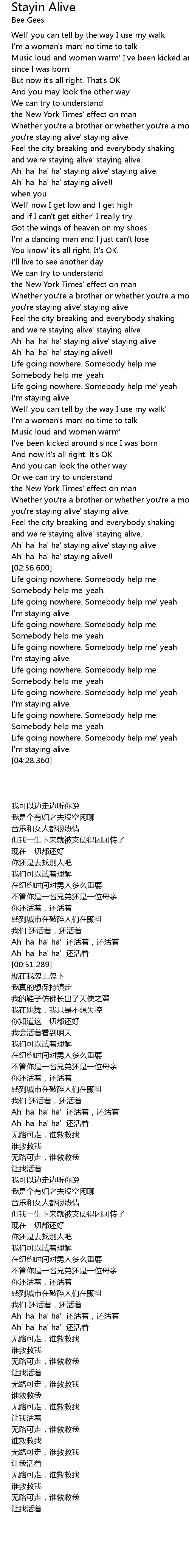 | [02:44.429] | Ah' ha' ha' ha' staying alive' staying alive |