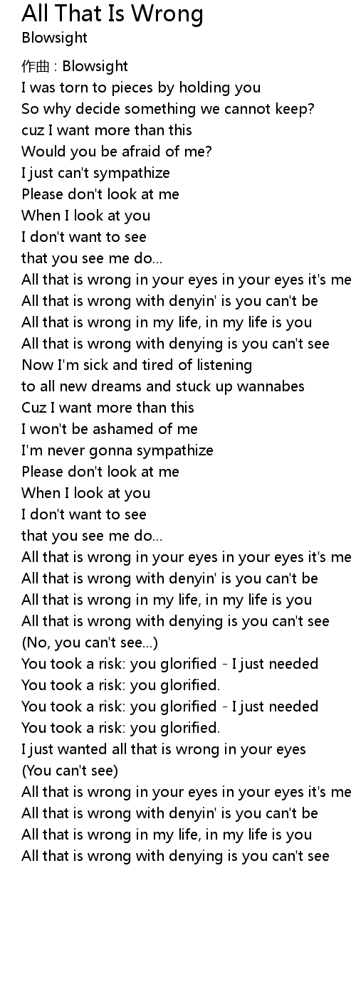 | All that is wrong in your eyes in your eyes it' s me | |