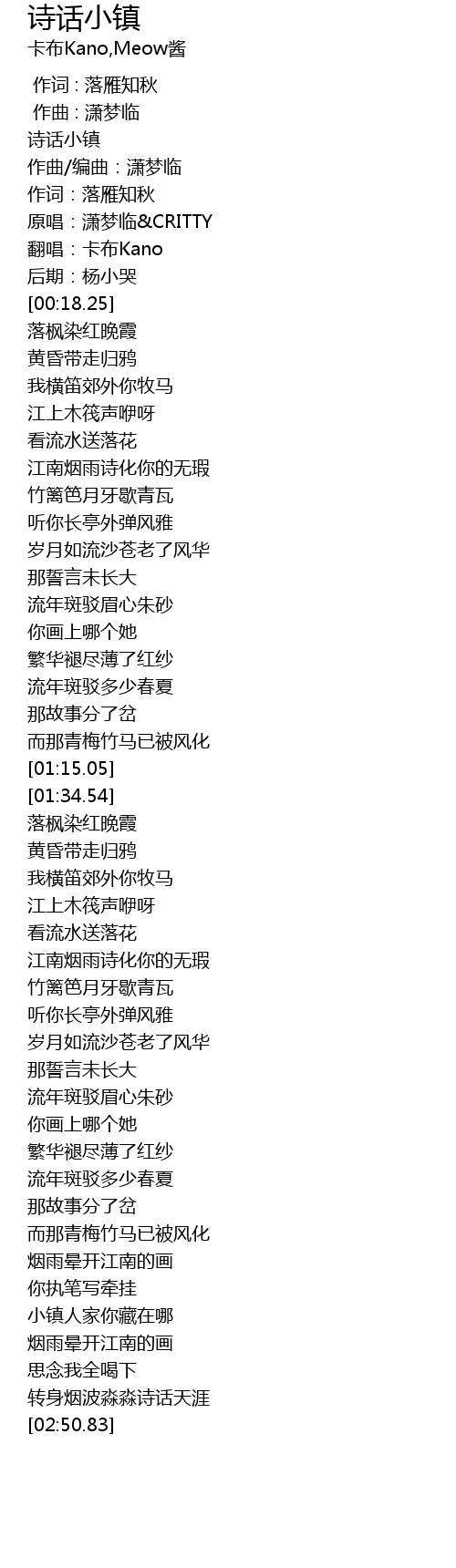 | [00:01.05] | 诗话小镇 |