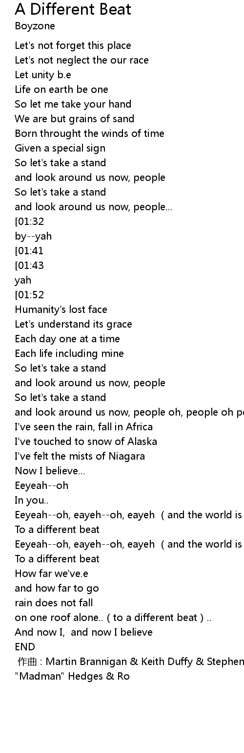 | [00:00.00] | zuo qu : Martin Brannigan Keith Duffy Stephen Gately Ray " Madman" Hedges Ro |