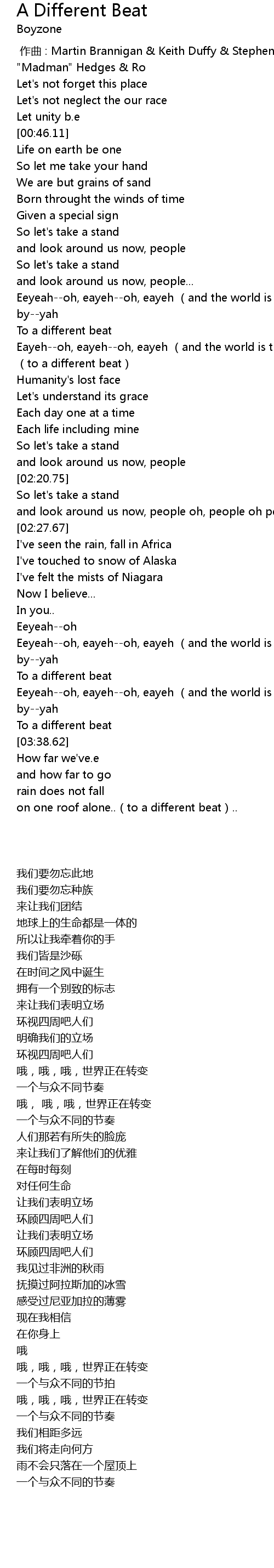 | [03:25.62] | To a different beat |