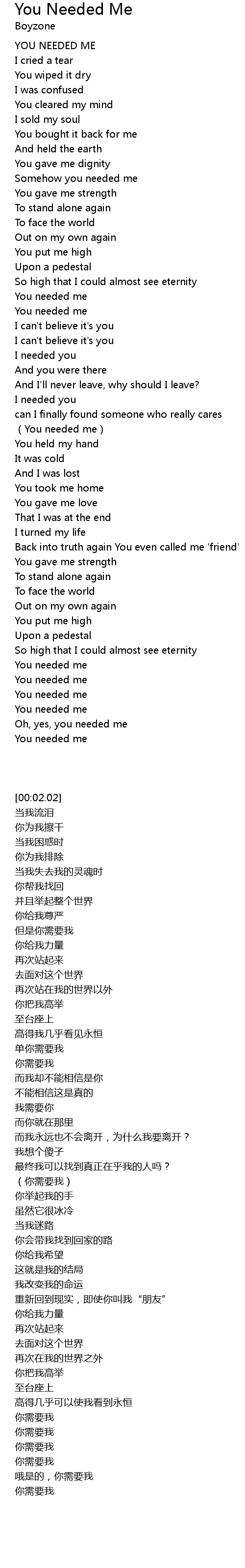 | [00:02.02] | YOU NEEDED ME |
