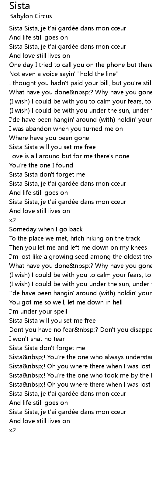 | Sista Sista, je t'ai gardée dans mon cœur | |