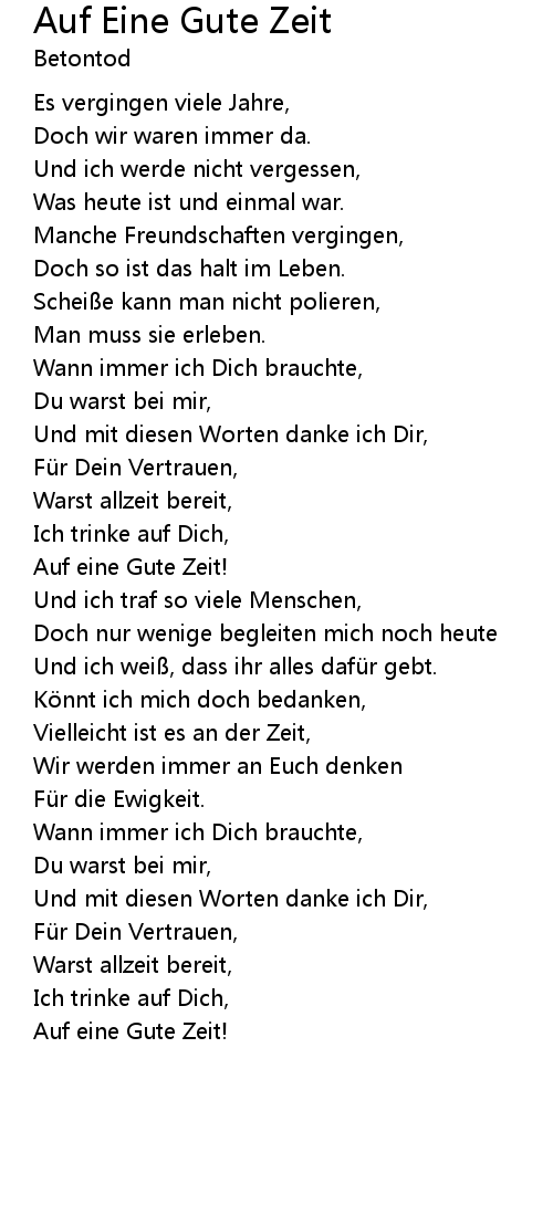 | Song | Auf Eine Gute Zeit |