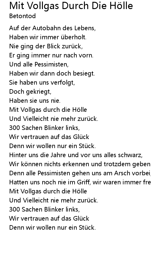 | Denn alle Pessimisten gehen uns am Arsch vorbei, | |