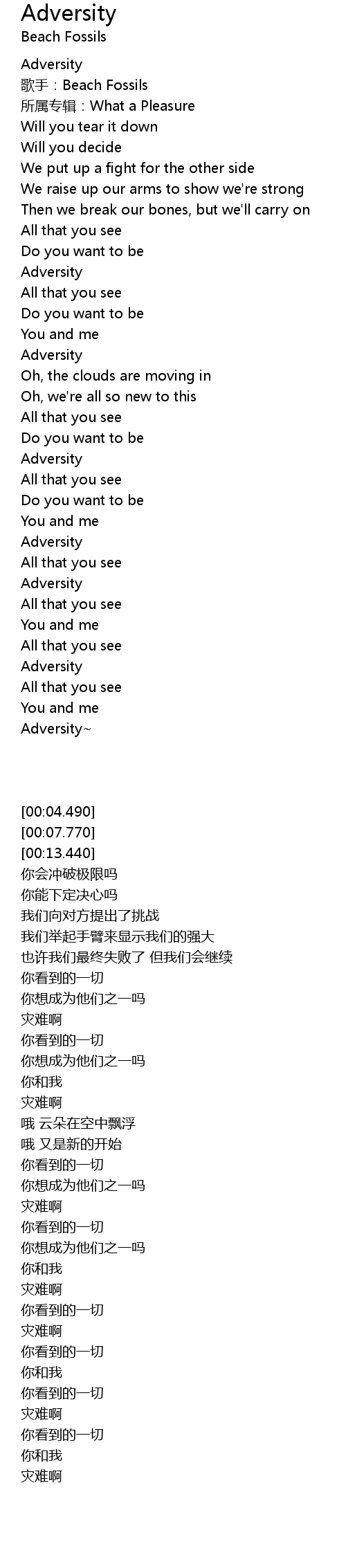 | [00:04.490] | Adversity |