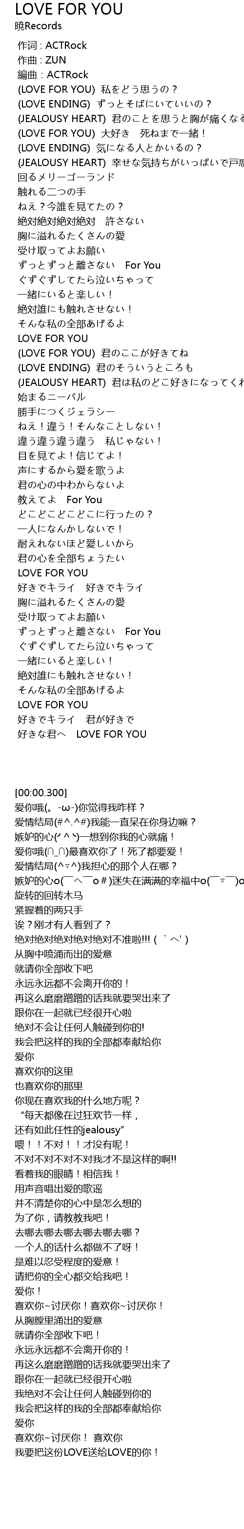 | [00:37.260] | LOVE FOR YOU dà hǎo sǐ yī xù! |