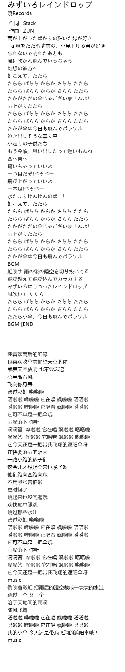 | [03:14.25] | みずいろにうつったレインドロップ |