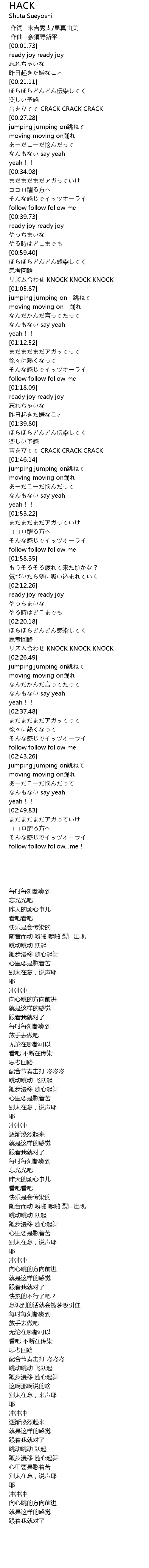| [01:03.63] | リズム合わせ KNOCK KNOCK KNOCK |