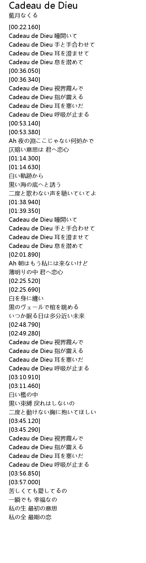 | [01:59.250] | Cadeau de Dieu 息を潜めて |