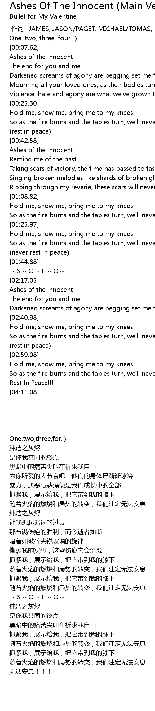 | [02:33.22] | Ashes of the innocent |