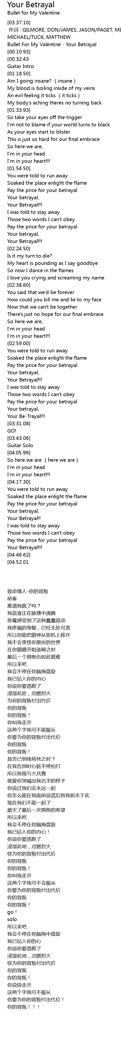 | [00:01.62] | Bullet For My Valentine - Your Betrayal |