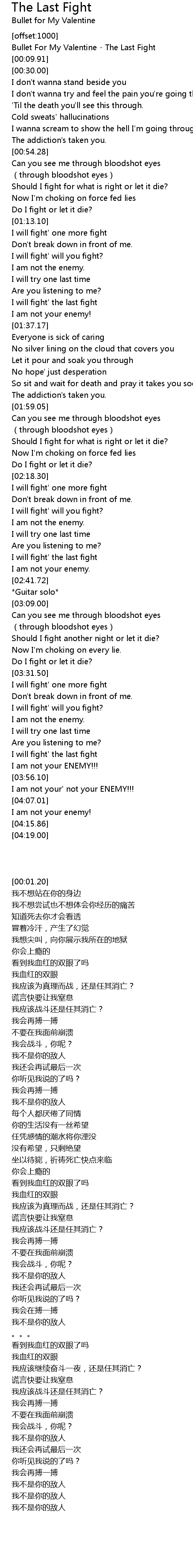 | [00:01.20] | Bullet For My Valentine The Last Fight |