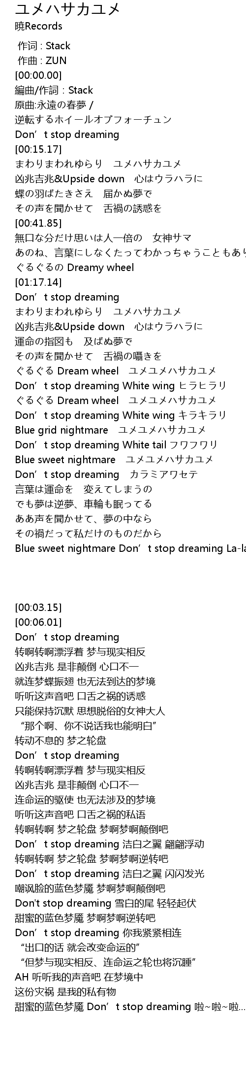 | [00:06.01] | 原曲:永遠の春夢 / 逆転するホイールオブフォーチュン |