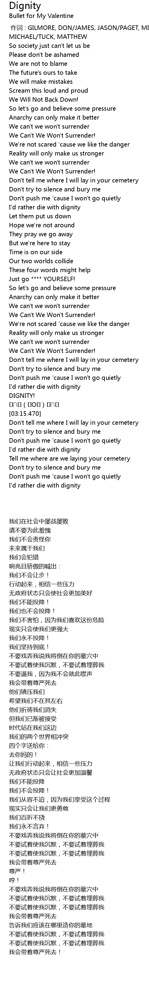 | [01:02.250] | Don' t tell me where I will lay in your cemetery |